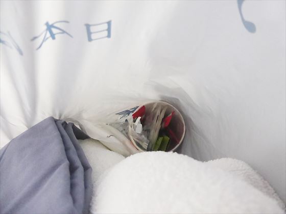 連泊するとタオルや室内着、飲み物や歯ブラシ類も新しいのを準備してくれます。部屋のドアノブに掛けておいてくれるので出掛けていても安心。